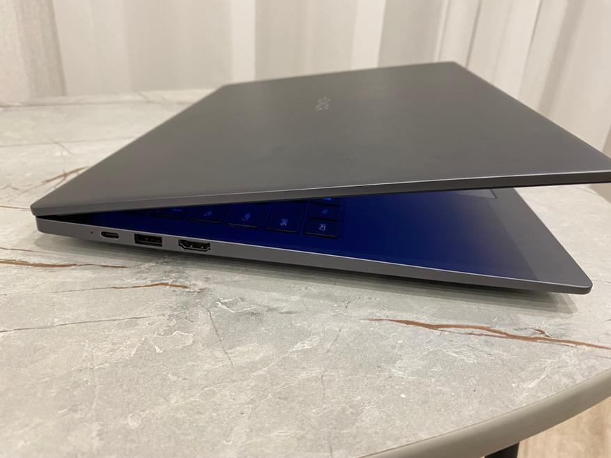По бокам имеются следующие порты: два USB-A (3.2 Gen 1 и Gen 2), USB-C (поддерживает зарядку), HDMI и аудиоразъем. Набор минимальный. Как правило в один порт USB-A подключена мышь, в USB-C подключен провод зарядки, а для других нужд остается только другой разъем USB-А. И этого не всегда достаточно. Приходится брать с собой USB-разветвитель. Отсутствие Thunderbolt или второго USB-C тоже слегка огорчает.