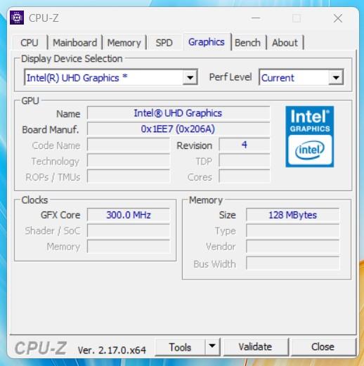 Графический модуль встроенный Intel UHD Graphics (48 исполнительных блоков, частота до 1,4 ГГц)