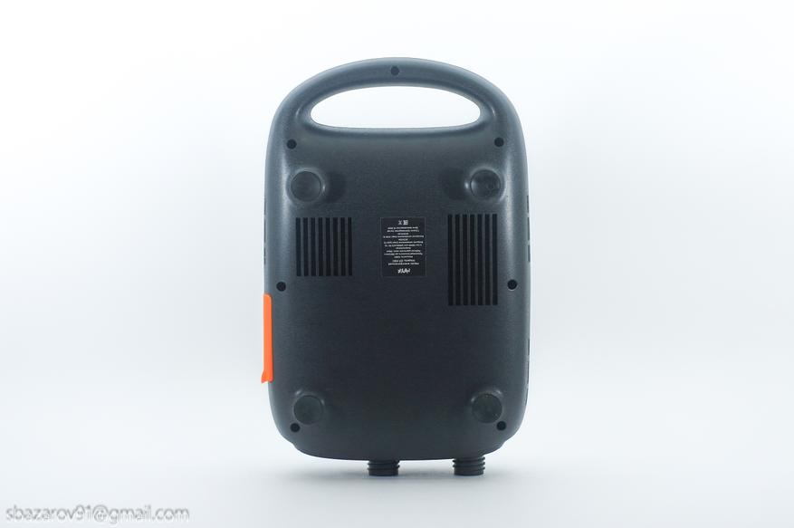 Забор воздуха происходит с нижней части корпуса через две решетки возле каждого электронасоса, а также из боковых решеток. Также снизу имеются резиновые ножки с присосками, которые отлично фиксируются на сапе и не дают насосу упасть.