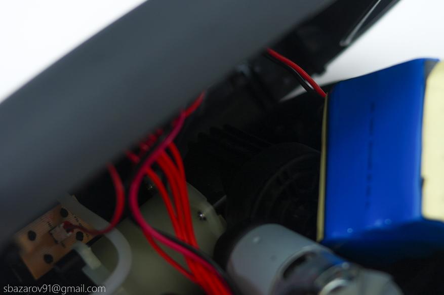 Внутри находится классическая схема на двух насосах, один из которых (мощный) подключается после достижения определённого давления (после 0,7 PSI) и качает до выставленного значения на экране. На одном из электродвигателей есть маркировка — RS540 12V, на втором её не видно (скорее всего, расположена снизу). Аккумулятор состоит из 6 элементов формата 18650 с ёмкостью 2300 мАч каждый.