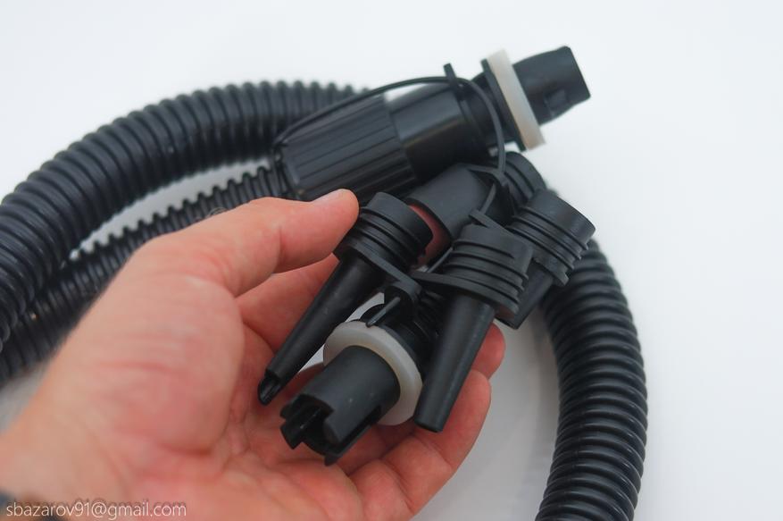 Изначально все насадки скреплены с помощью пластиковой лески на основании шланга. Это сделано для того, чтобы не терять насадки во время эксплуатации. Однако, если вы используете только одну насадку, будет удобнее снять лишние.