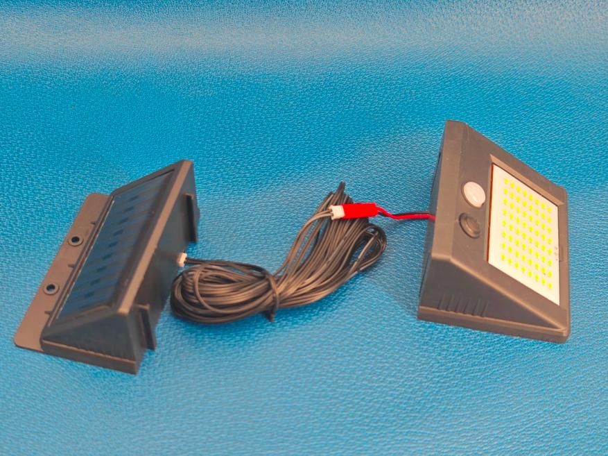 Продолжаю поиски удобной уличной подсветки. Пришел вот к такому фонарю с выносной солнечной батареей. Встроенный PIR-сенсор реагирует на движение, а встроенный литиевый элемент питания позволяет работать ночью и в сумерках.