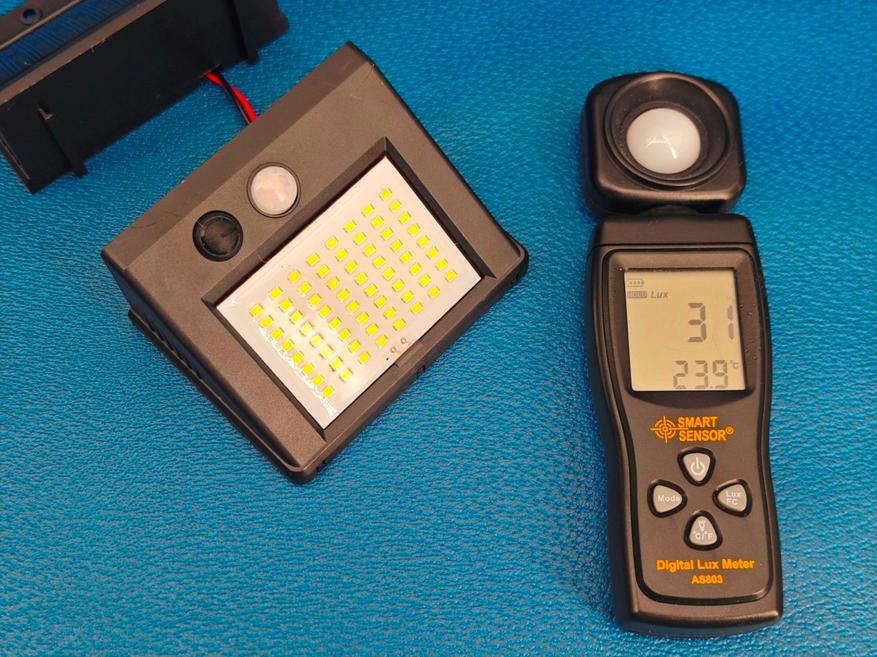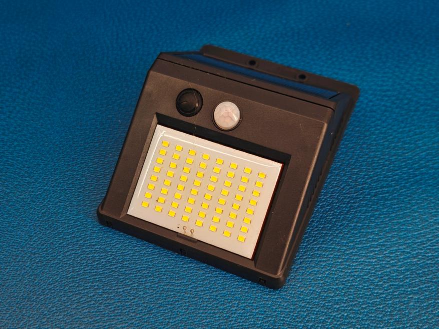 Подобные уличные светильники встречаются с матрицами на 20/32/48 и 64 светодиода. Матрица обычная прямоугольная, небольшой мощности (в обзоре 0.55 Вт), внешняя зарядка не предусмотрена, кроме интегрированной солнечной батареи. Хочу сказать, что эти светильники ничего не мешает использовать и в помещении, например, в гараже или дома.
