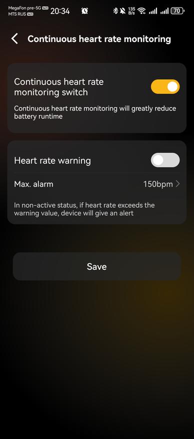 Как это всегда сложилось у меня, первым делом включаю отслеживания всех показателей на постоянной основе. Так же надо дать все разрешения для работы оповещений и приема и осуществления звонков на и с фитнес-часов.