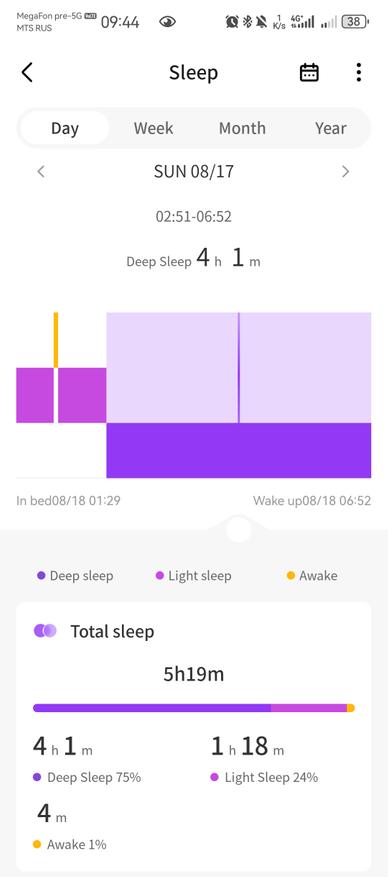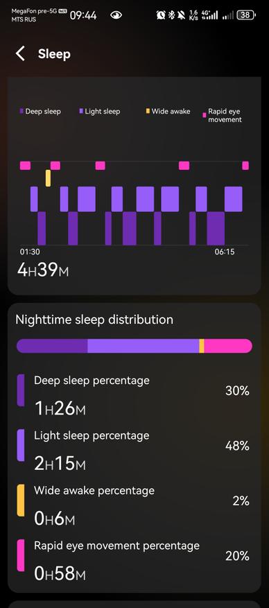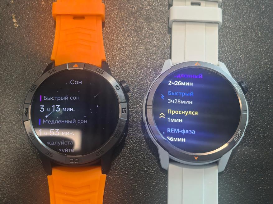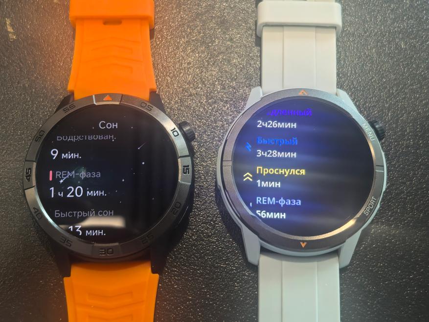 Сравнил сон с предыдущей моделью бренда, AGM Watch Legion. Часы подсчитали сравнимое время сна как по времени, так и интервалам, одновременно записав пробуждение. Обновленная модель часов, как и первая, считает REM-фазу сна. По такой фазе, учитывается она или нет, можно смело относить часы к проходным, показателям которых совершенно можно не доверять, и к адекватным, которые определяют их более-менее правильно.