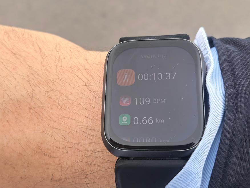 Заряжается товар за 90 мин на 376mAh (1,9Wh). Разряд в сутки составляет около 13%. Большую часть дня я ходил с минимальным уровнем подсветки. На улице ее было не совсем достаточно, приходилось вглядываться, но я или смотрел редко, или при долгом нахождении под солнцем выставлял ее в максимум. В среднем 13% за день — это нормальный показатель для недорогих часов AMOLED-экраном, но можно и меньше. Цифра получена без учета занятий спортом, а просто с включенными всеми показателями оценивания здоровья. Итого заряда мне хватило на 8 дней.