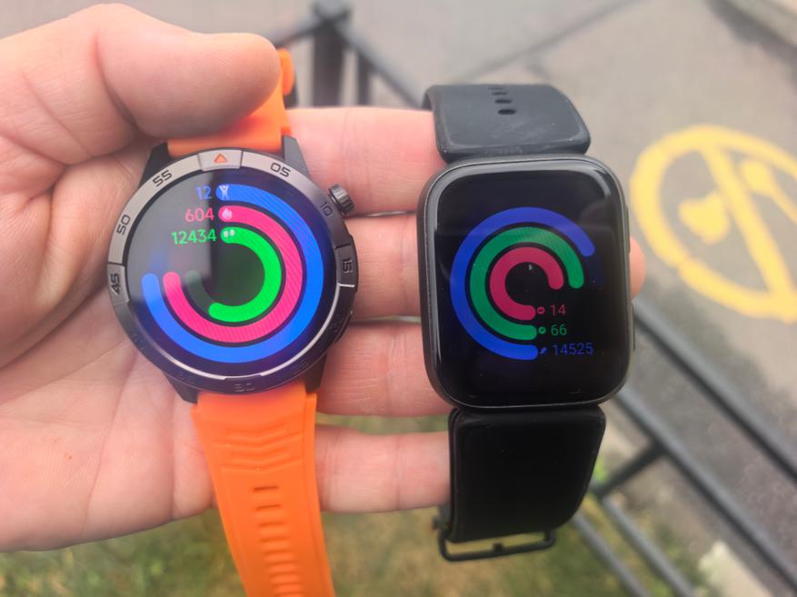 Кнопка имела разную реализацию от часов к часам. К примеру в TicWatch Pro 5 (обзор здесь) можно было выбрать, как будут перемещаться экрана, или справа налево, или сверху вниз. В смарт-часах HUAWEI WATCH 4 Pro SE (обзор здесь) нельзя изменить направление движений с главного экрана. Мне больше нравилась реализация в модели TicWatch, на втором месте — HUAWEI, но вариант в Rogbig GT или же AGM Watch Legion (обзор здесь) совсем не приглянулся. В обзоре последних я не заострял на этом внимание, так как для бренда это было первое носимое устройство, насколько я помню, на глобальном рынке. Оно получилось хорошим: шаги и расстояния оценивались на уровне лидеров рынка (сравнивал с HUAWEI). В текущем обзоре сравнений с лидерами не будет, а будет с «одноклассниками».