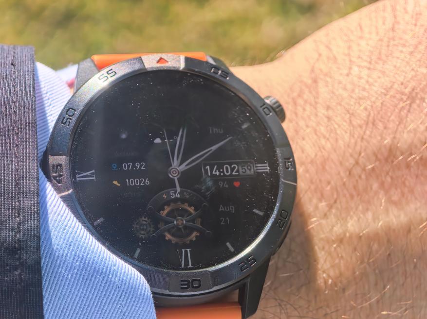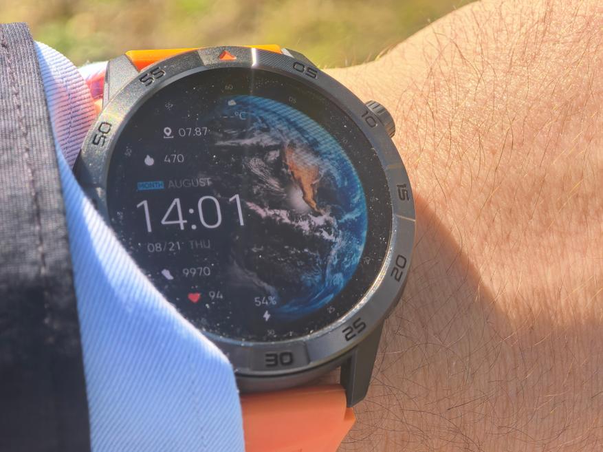 Яркость заявлена в 600 нит, но реальная меньше. Не оценил ее летом, а сейчас солнечных дней мало. При высоких солнечных лучах информация будет считываться плохо, при умеренных уже лучше. Я не ожидал от модели большой яркости. Хотелось, чтобы была опция «Автояркость», но, к сожалению, ее нет, поэтому держу показатель всегда на уровне, большем 50%.