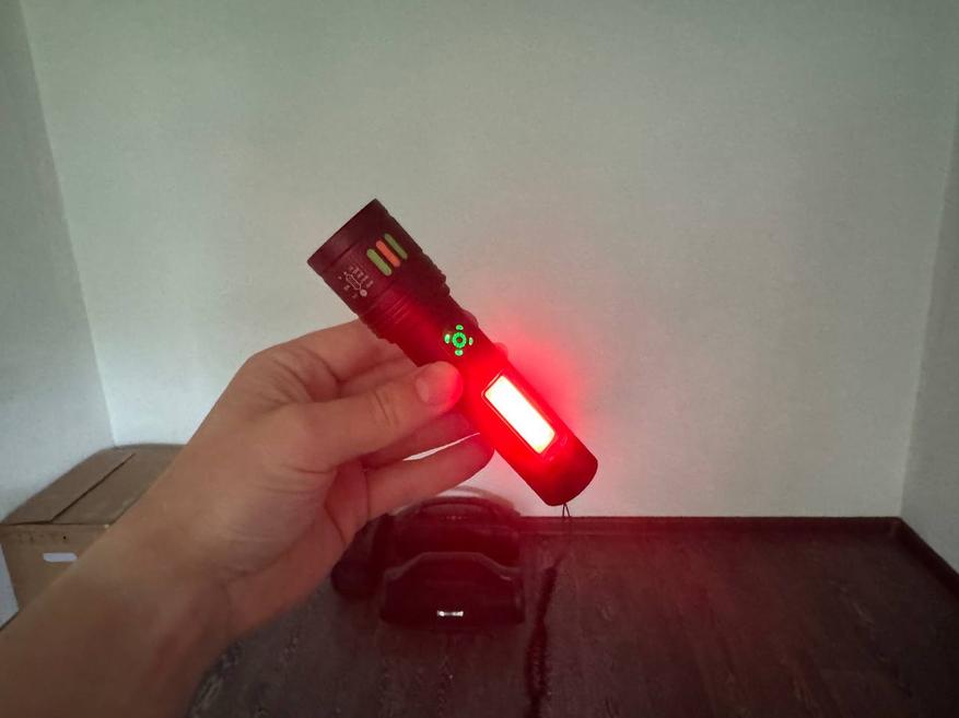 На боковой части устройства присутствует ещё один источник света, который можно использовать в качестве лампы на рабочем столе или для освещения в палатке. Также боковой светодиод имеет режим красного свечения для подачи сигнала в темноте на природе. Режим красного свечения может также работать как стробоскоп. Все режимы переключаются основной резиновой кнопкой включения.