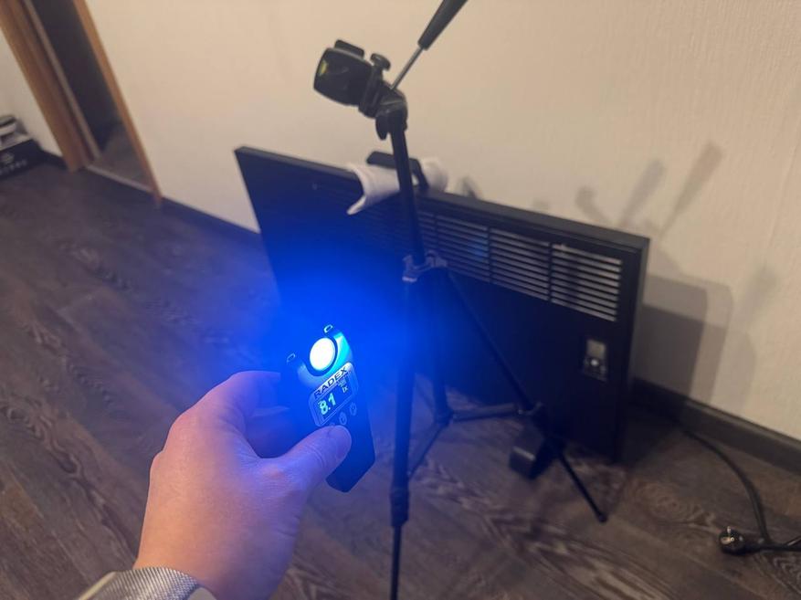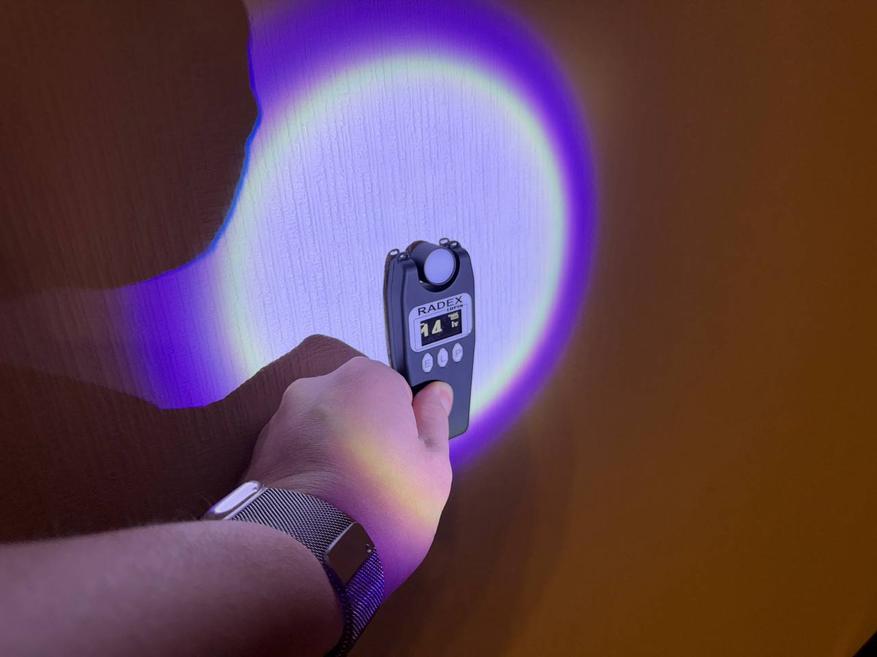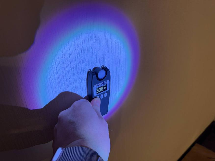 Напоследок тест бокового источника света. В непосредственно близости световой поток составил 46 000 люкс. На большем отдалении, примерно 10-15 см — 2400 люкс.