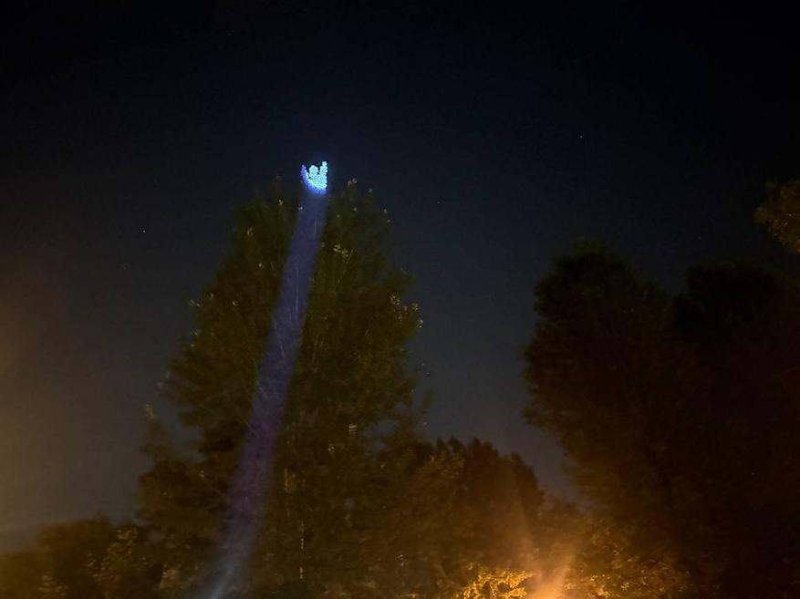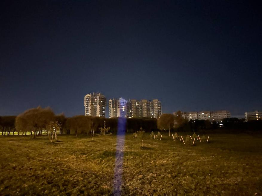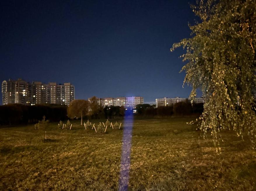 Также я испытал фонарик на открытом пространстве. Пучок света действительно бьёт очень далеко и достаёт до всех объектов внутри городской застройки. Так, он легко осветил крону дерева на расстоянии примерно 80-100 м, а также крышу шестнадцатиэтажного здания на расстоянии примерно 120-150 м.