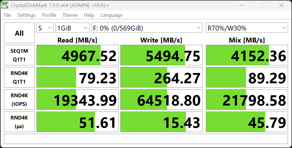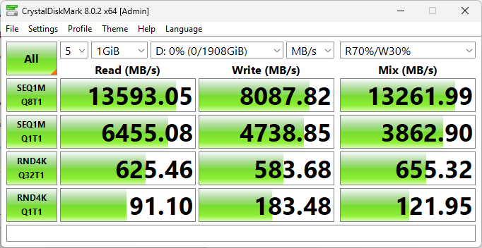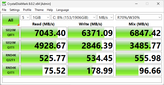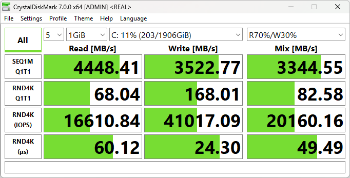 Влияние режимов на накопитель практически отсутствует, разница на уровне случайных отклонений.
