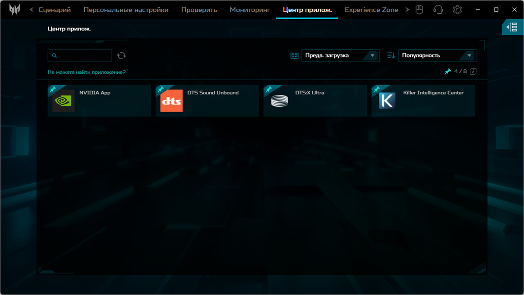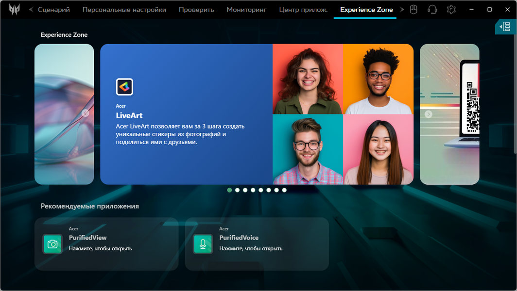 Также можно обращаться к установленным на ноутбуке утилитам других вендоров и попасть в Acer Experience Zone, где можно, в частности, использовать различные эффекты с использованием ИИ.