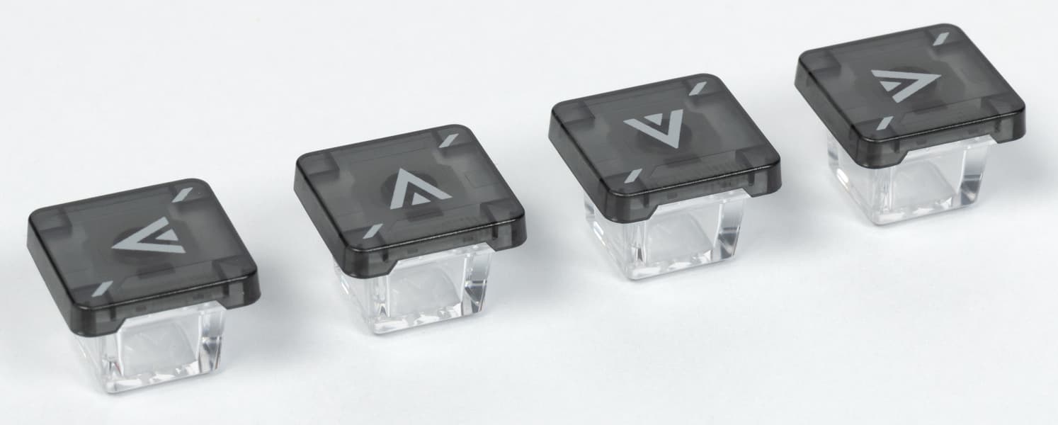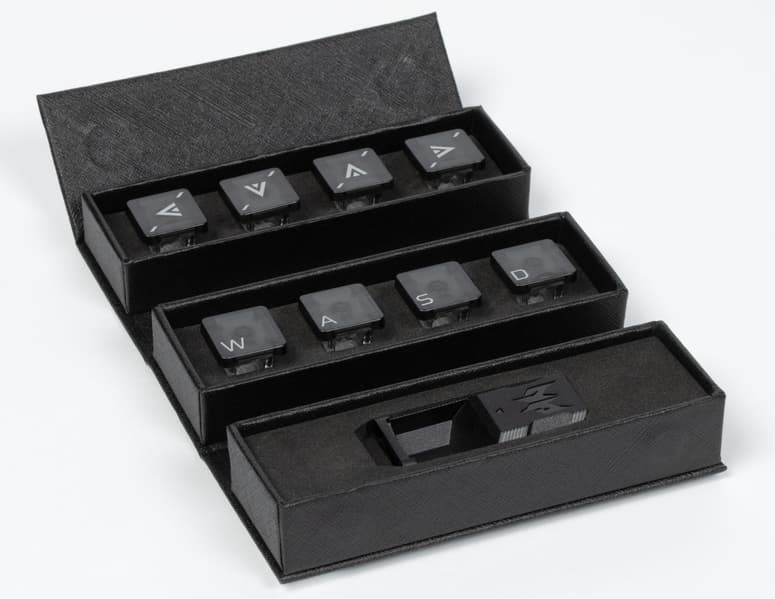 В комплекте есть два набора сменных полупрозрачных колпачков: для клавиш навигации в играх W, A, S, D (но без соответствующих символов кириллицы) и для стрелок.