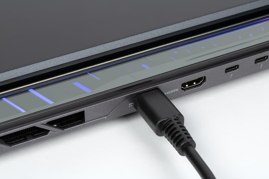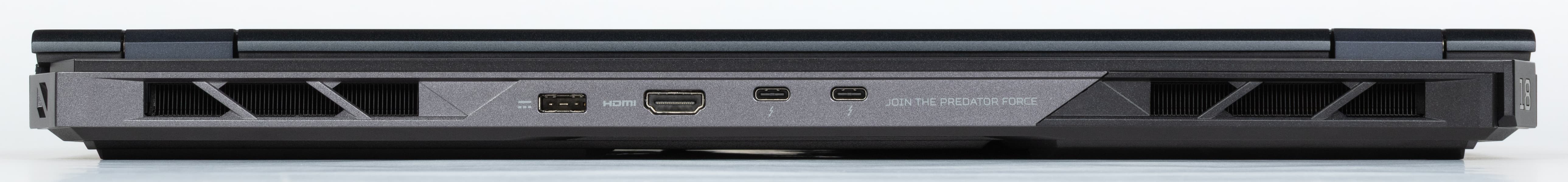 На заднем торце имеются гнездо питания, разъем HDMI и два порта Thunderbolt 5.