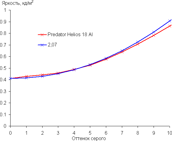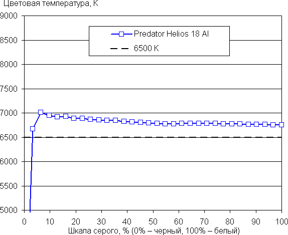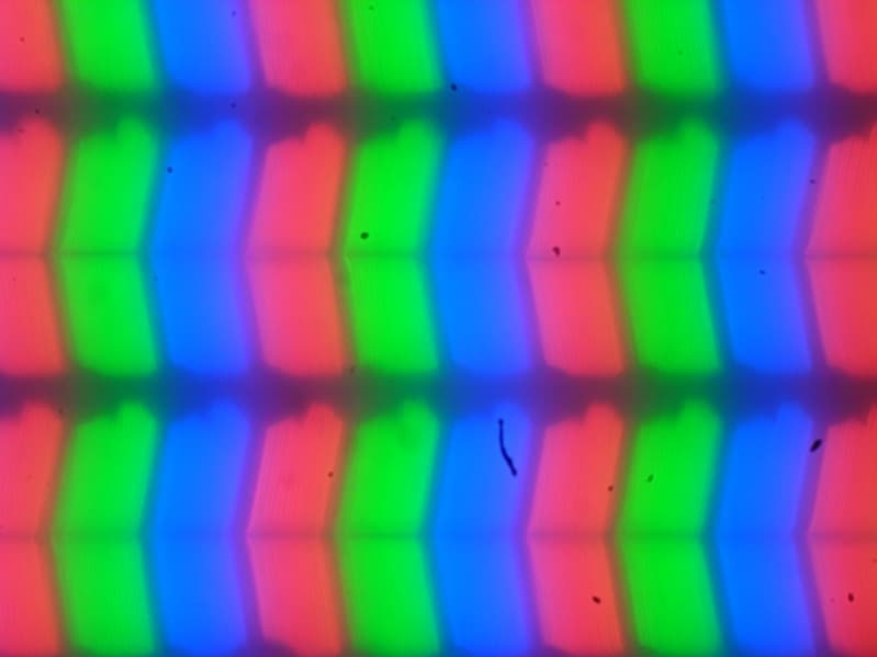 Внешняя поверхность матрицы черная жесткая и полуматовая (зеркальность хорошо выражена). Какие-либо специальные антибликовые покрытия или фильтр отсутствуют, нет и воздушного промежутка. При питании от сети или от батареи и при ручном управлении яркостью (автоматической подстройки по датчику освещенности нет) ее максимальное значение в режиме SDR составило порядка 380 кд/м² при работе встроенной видеокарты и 1180 кд/м² при работе дискретной видеокарты (в центре экрана на белом фоне). Максимальная яркость очень высокая, поэтому за ноутбуком можно будет работать/играть на улице ясным днем, если расположиться хотя бы не под прямыми солнечными лучами.