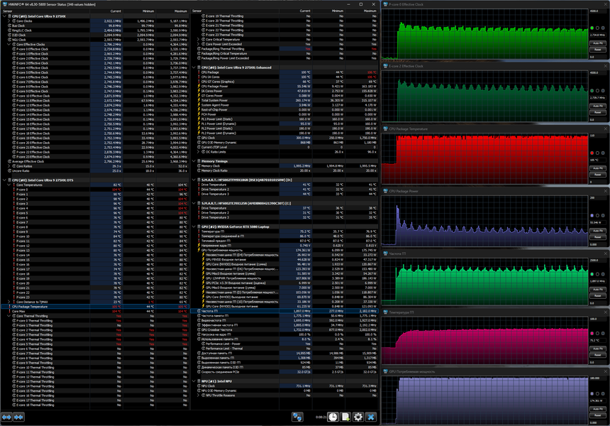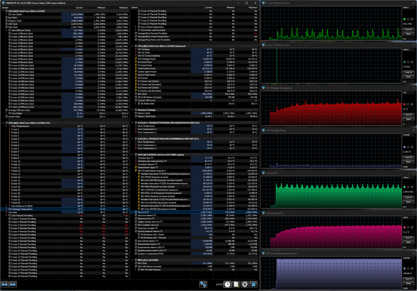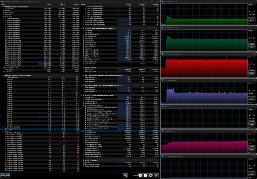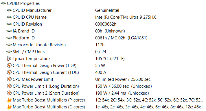 | Процессор | Intel Core Ultra 9 275HX (8+16 ядер/24 потока, 2,7—5,4/2,1—4,6 ГГц, 45—55/160 Вт) | |