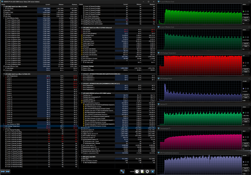 | Видеоподсистема | дискретная Nvidia GeForce RTX 5080 Laptop (16 ГБ GDDR7, до 150 Вт), интегрированная Intel Arc Xe-LPG Graphics | |
