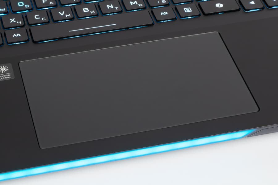 Тачпад очень большой: 151×91 мм, его поверхность чуть заглублена. Выделенных клавиш нет, но левый и правый ближние его края вполне могут работать как соответствующие кнопки мыши. Сам по себе он вполне удобный, разве что изрядно смещен влево, и при печати левая рука может касаться его поверхности, вызывая непредсказуемые перемещения указателя.