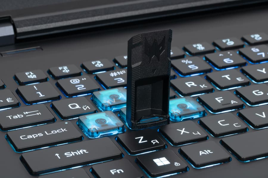 Кнопка Power — крайняя справа в ряду функциональных клавиш, такое расположение не исключает случайные нажатия. Слева за клавиатурой есть продолговатая и узкая кнопка оперативного переключения режимов (см. ниже описание утилиты PredatorSense), оснащенная встроенной подсветкой.