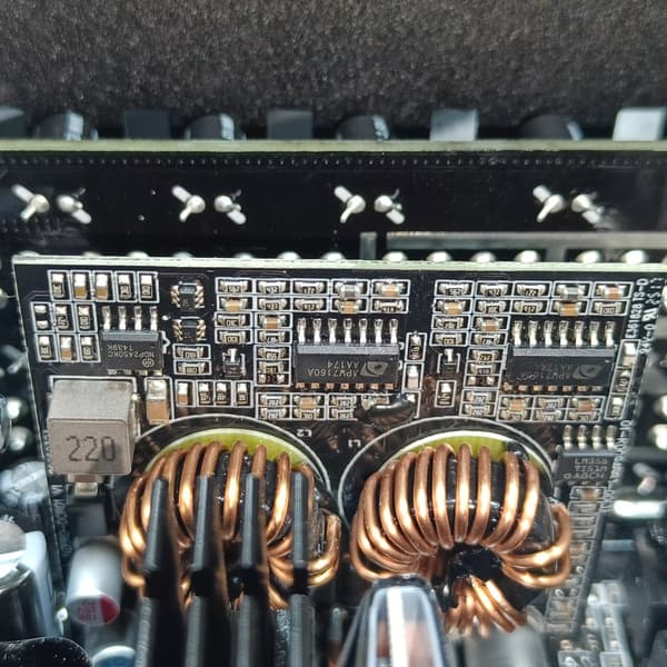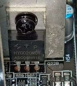 Транзисторы синхронного выпрямителя установлены с лицевой стороны основной печатной платы, на них имеется радиатор, что в случае блока питания, предполагающего пассивное охлаждение в некоторых режимах работы, можно только приветствовать. Всего в этой схеме восемь транзисторов HYG020N04.