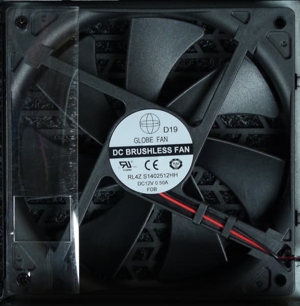 В блоке питания установлен вентилятор Globe Fan RL4Z S1402512HH типоразмера 140 мм, подключение двухпроводное, через разъем.