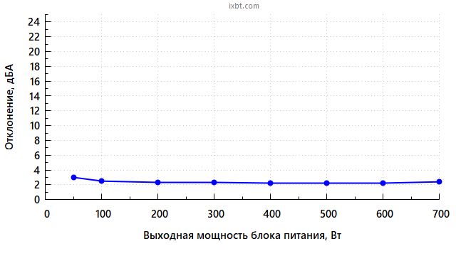Аналогичный тест был проведен и на мощности 650 Вт, значительных отклонений он тоже не выявил.