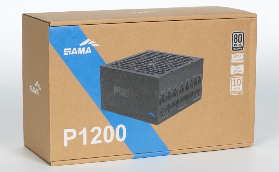 В этот раз мы познакомимся с блоком питания китайской компании Sama из Гуанчжоу — ранее мы уже протестировали несколько ее процессорных кулеров. Модель Sama P1200 имеет мощность 1200 Вт и сертификат 80+ Platinum, соответствует стандарту ATX 3.1 и позволяет питать одновременно сразу две очень мощные современные видеокарты через 16-контактные разъемы PCIe 5.1 (12V-2×6). В данной серии существуют также модели мощностью 850 и 1000 Вт, причем последнюю мы уже протестировали в конце прошлого года.
