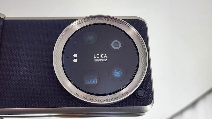 Leica Summilux optical lens, 75mm floating telephoto and 120mm periscope, Leica 1-inch main camera 50MP Sony LYT-900 main sensor with a variable (f/1.63)-(f/4.0) aperture + OIS. It includes three additional 50MP sensors (IMX858) for 12mm ultra-wide, 75mm floating telephoto (3.2\times ), and 120mm periscope (5\times) shots. It supports 8K video, 32MP front camera, and advanced AI photography.