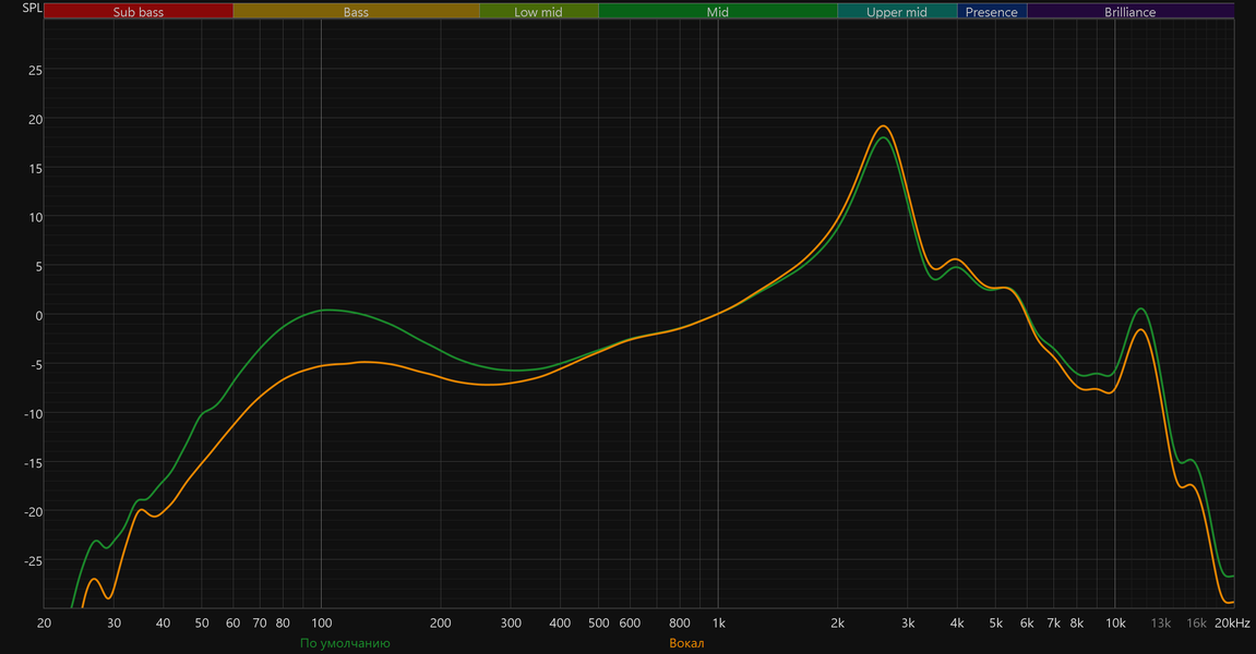 Остальные пресеты могут пригодиться в отдельных сценариях, но для постоянного прослушивания подходят слабо. В частности, режим «Вокал» хорошо показывает себя при просмотре разговорных видео: ослабление низких частот выводит середину на первый план и делает речь более разборчивой.