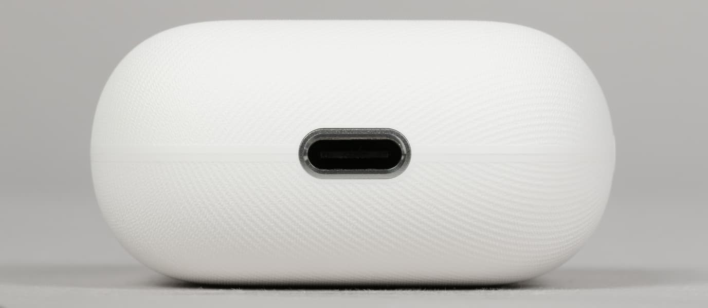 В нижней части корпуса футляра находится порт USB Type C, служащий для зарядки. Все оказавшиеся под рукой во время тестирования коннекторы помещались в него полностью, с приятным щелчком и достаточно плотно — с минимальным люфтом.