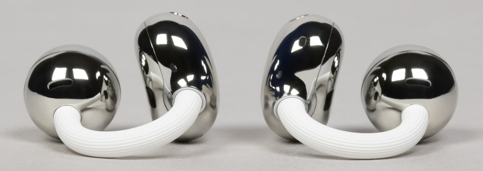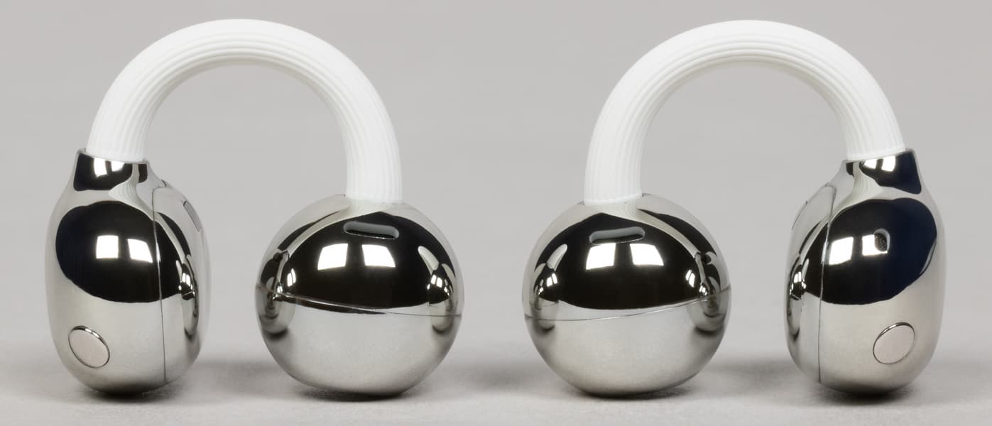 Каждый наушник по-прежнему состоит из трех частей: элемента в форме фасоли, еще одного в форме шара и эластичного коннектора, который производитель называет C-bridge.