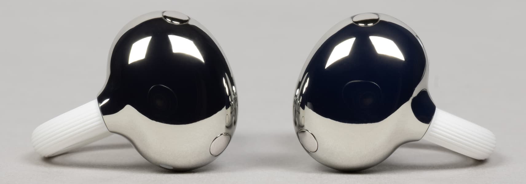 На внешней стороне «фасолин» расположены отверстия микрофонов, а также небольшие округлые элементы, напоминающие кнопку, функция которых не очень понятна. Вероятно, таким образом производитель подчеркивает, что эта зона является сенсорной и используется для управления свайпами — к этому нововведению мы еще вернемся ниже.