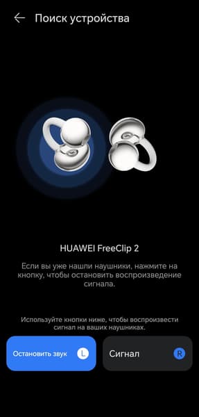 Предусмотрена и функция поиска наушников, реализованная стандартным образом: при активации они издают звуковой сигнал на максимальной громкости, что помогает найти их в более-менее тихом помещении.