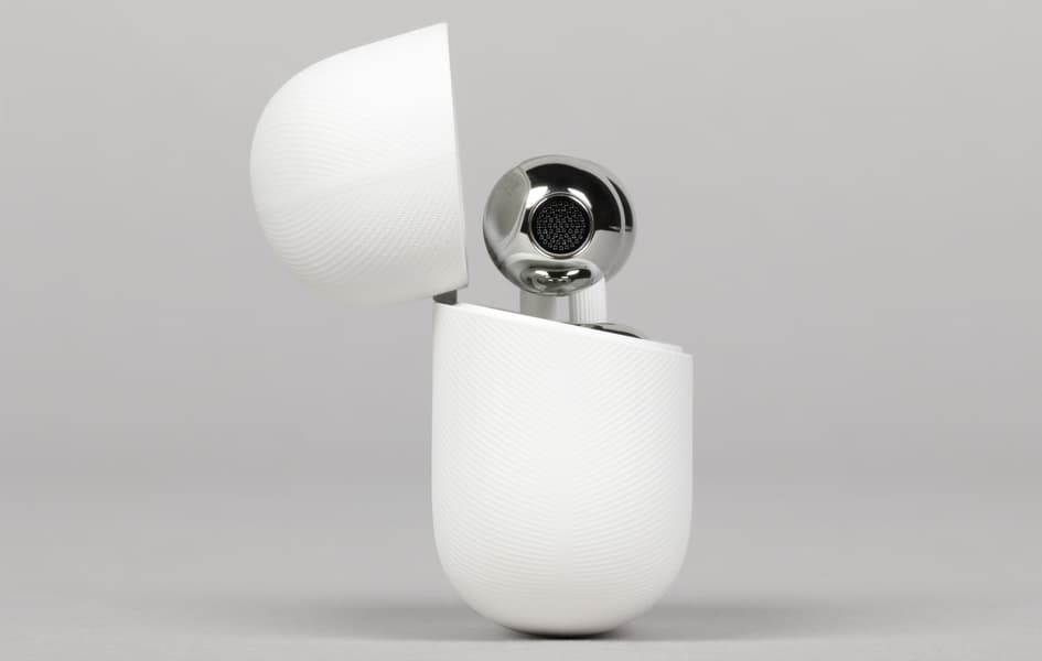 В «шаре» размещен динамик, а в «фасолине» — электронная начинка и аккумуляторы. Контакты для зарядки расположены на нижней части фасолевидного элемента, там же нанесена служебная информация.