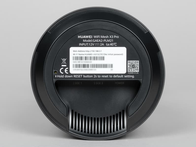 Дополнительный узел немного проще — в нем установлен только один сетевой порт на 1 Гбит/с, а характеристики беспроводной части аналогичны базовому блоку. При этом требования к блоку питания такие же, как у основного устройства, а снизу тоже видна решетка вентилятора.