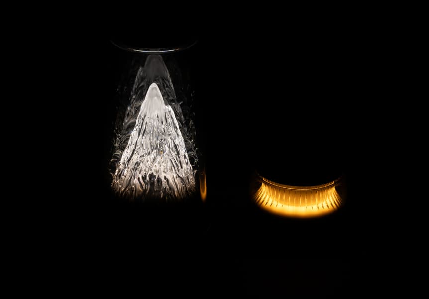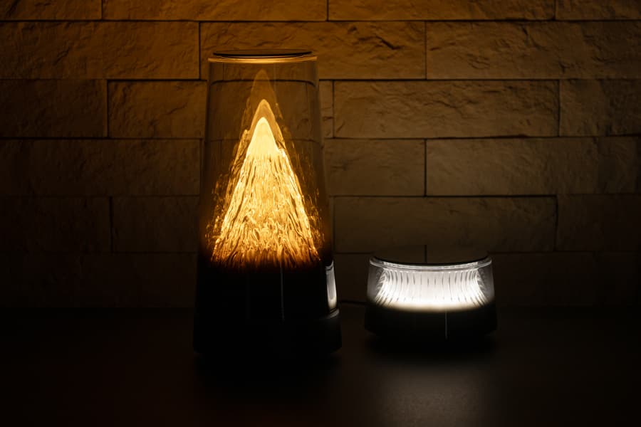Основное устройство имеет формат усеченного конуса. Габаритные размеры — высота 250 мм, диаметр основания — 123 мм. Вес данного блока — почти 800 г. Центральная часть выполнена из приятного твердого прозрачного акрила с затемнением внизу. Внутри находится стилизованная гора со снежной шапкой, также из пластика. Именно этот элемент может подсвечиваться изнутри.