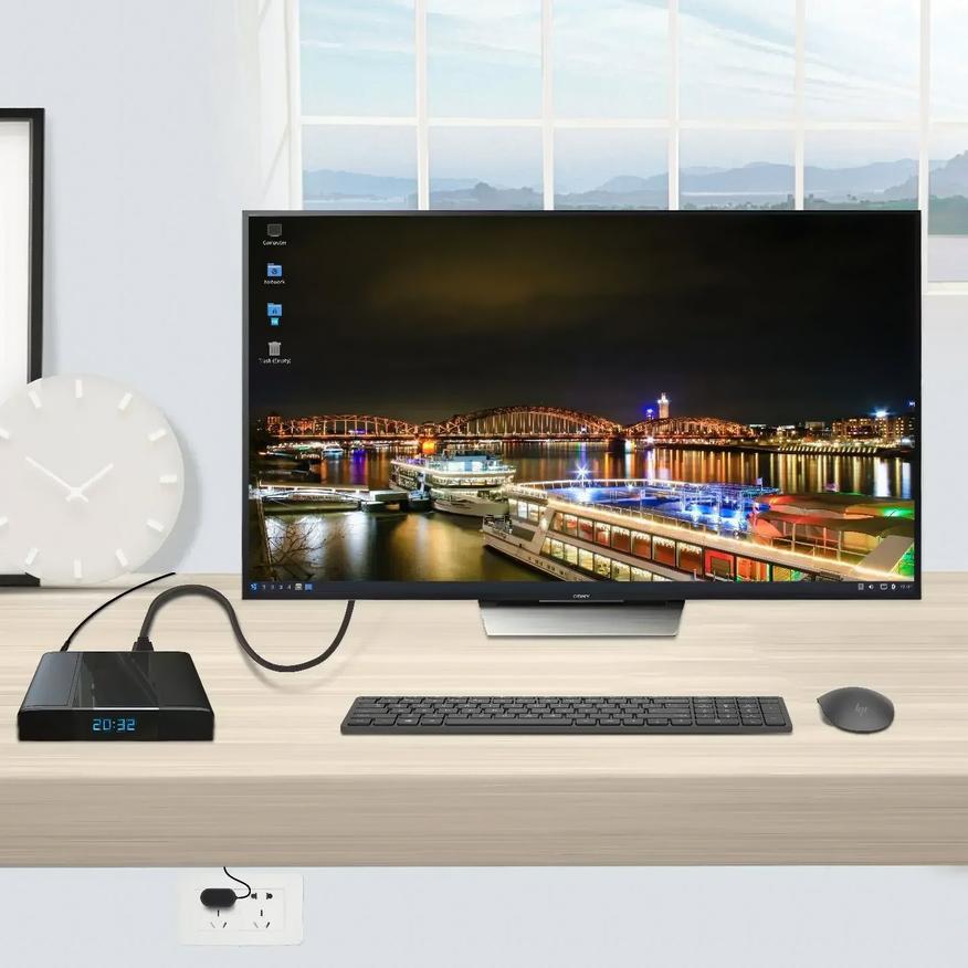 Аппаратная начинка XCY X26UL/YT варьируется в зависимости от выбранной конфигурации. Базовые модели оснащаются процессорами Celeron 1037U, N4000 или Pentium 2217U — эти двухъядерные чипы, хоть и не блещут производительностью, вполне справляются с задачами мультимедийного центра. Для более требовательных пользователей доступна версия с Core i5-9300H, способная справиться с ресурсоёмкими задачами. Объём оперативной памяти может достигать 16 гигабайт, а встроенное хранилище расширяется до внушительных 512 гигабайт. Комплектация включает блок питания, Wi-Fi антенны и крепление стандарта VESA, позволяющее закрепить устройство на задней панели монитора или телевизора. Пульт, к сожалению, в комплект не входит и приобретается отдельно.