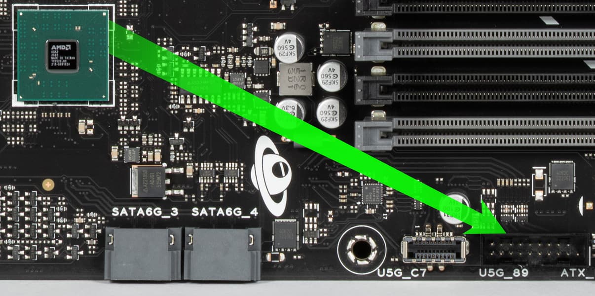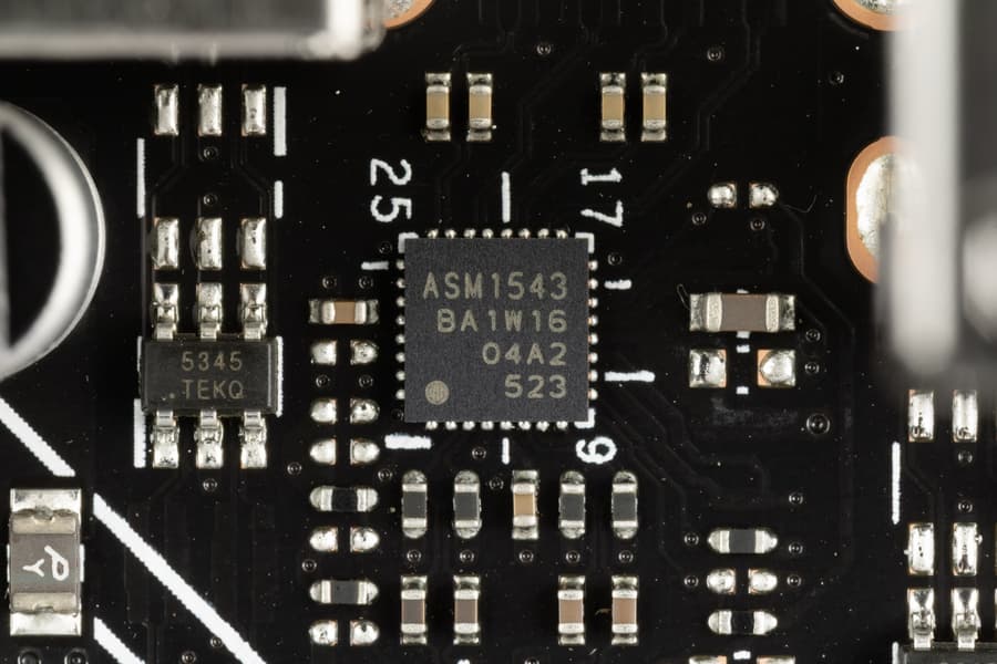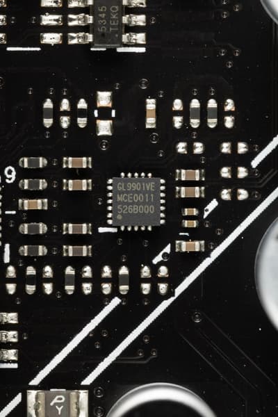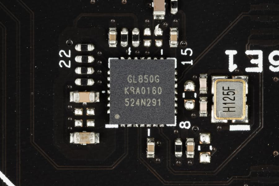 - 8 портов USB 2.0/1.1: 4 реализованы через контроллер Genesys Logic GL850G (на него потрачена 1 линия USB 2.0 от CPU) и представлены двумя внутренними разъемами (каждый на 2 порта), еще 4 реализованы через B850 и два из них также представлены внутренним разъемом на 2 порта, оставшиеся 2 представлены портами Type-A на задней панели (черные).