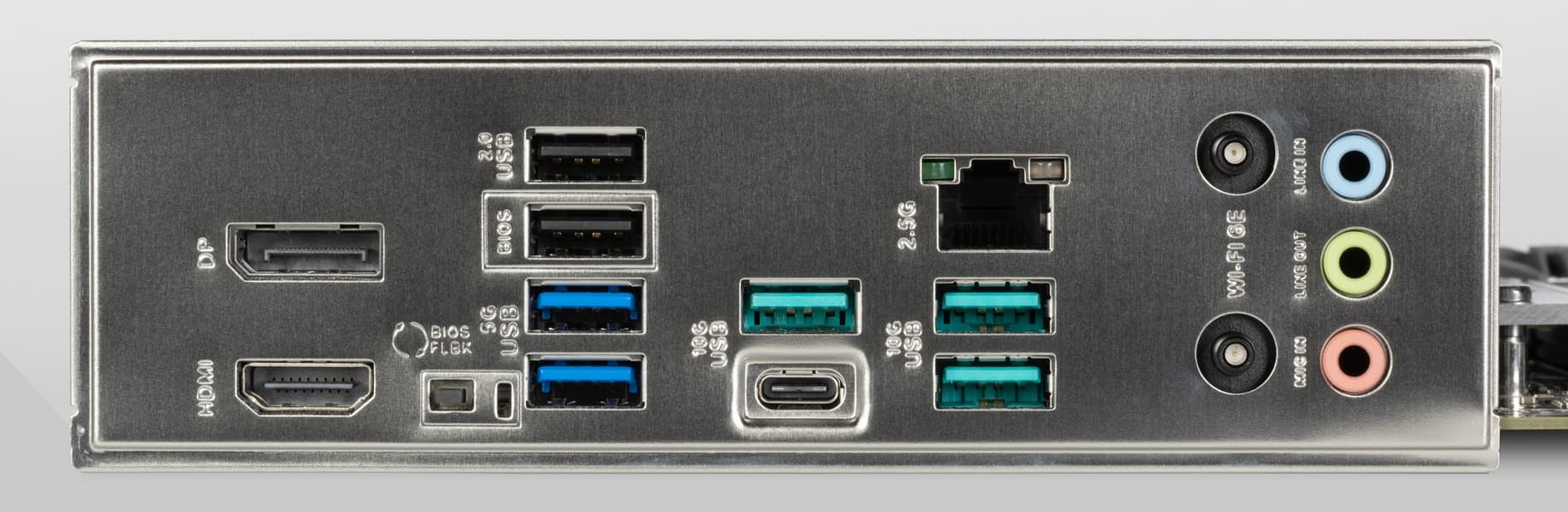 - 4 порта USB 3.2 Gen2: все реализованы через CPU и представлены на задней панели тремя портами Type-A (зеленые) и одним портом Type-C;