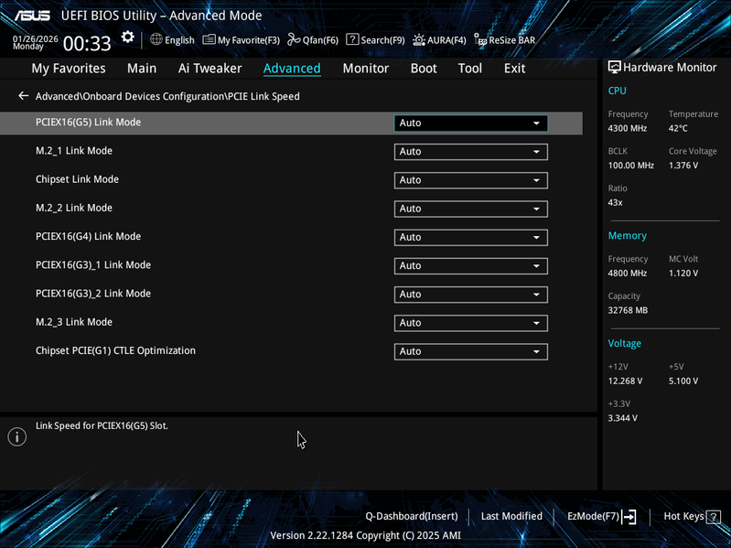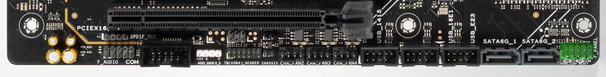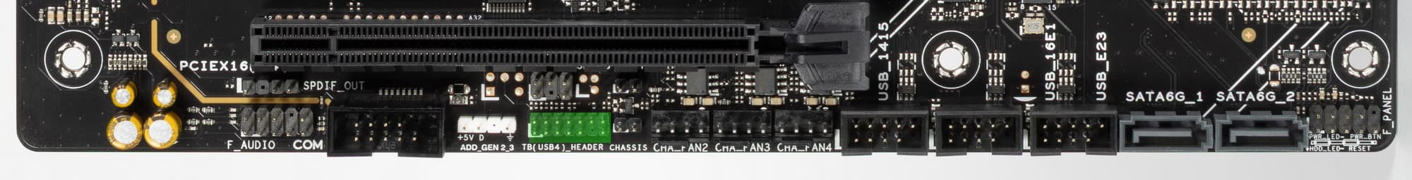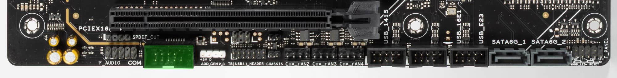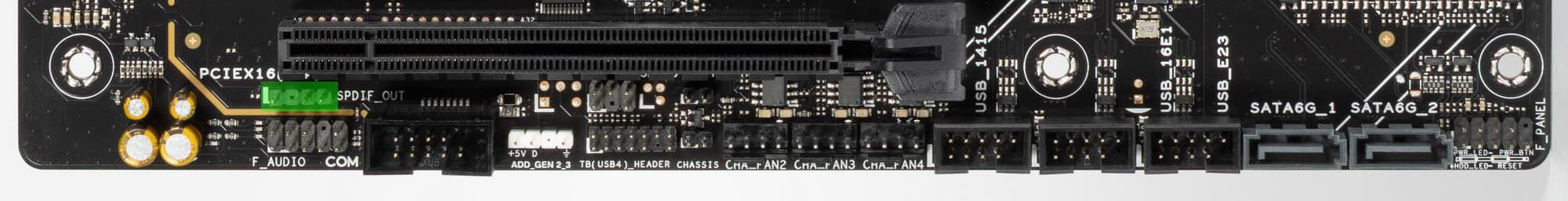Так как перераспределения линий PCIe 5.0 между слотами у этой материнки нет, то поэтому и нет мультиплексоров для PCIe 5.0.