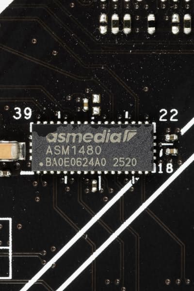 Если посмотреть на схему распределения слотов PCIe выше, то можно увидеть условие работы портов SATA и слотов: SATA 1/2 делят ресурсы со слотами PCIe x16_3/4, и тут для автоматического переключения ресурсов востребованы мультиплексоры ASM1480 от ASMedia.