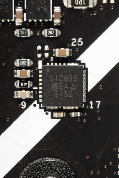 Канал фазы VDD_MISC имеет суперферритовый дроссель и транзисторную сборку SiC629 от Vishay (до 80A).