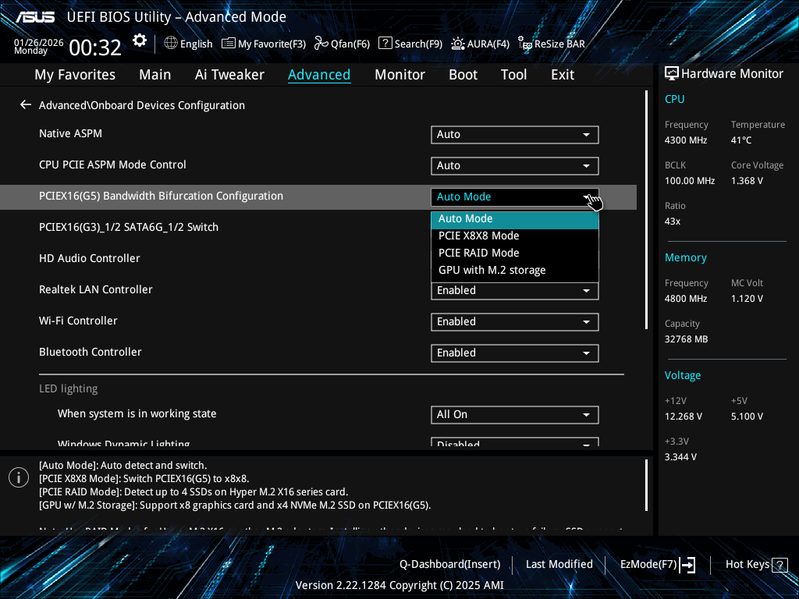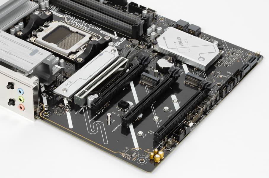 У Asus Prime B850-Plus WiFi имеется 17 портов USB разных видов, включая четыре быстрых порта USB 3.2 Gen2 и пять USB 3.2 Gen1. Основной слот PCIe х16 получает от процессора 16 линий PCIe 5.0, возможно разделение линий через настройки в BIOS Setup (в случае установки в слот карты расширения со слотами M.2). У платы имеется 3 слота M.2, один из которых (M.2_1) поддерживает PCIe 5.0, остальные три — PCIe 4.0. Следует отметить, что два порта SATA делят ресурсы с двумя слотами PCIe x16, работающими в режиме x1.