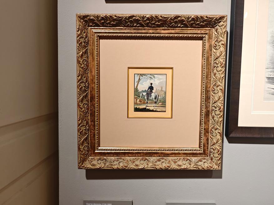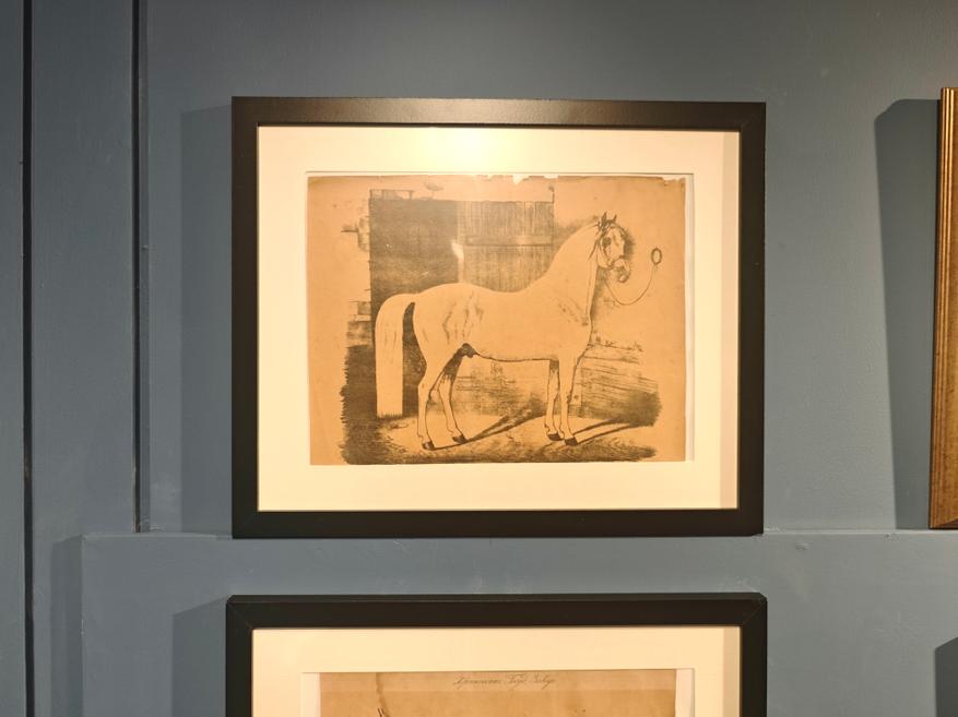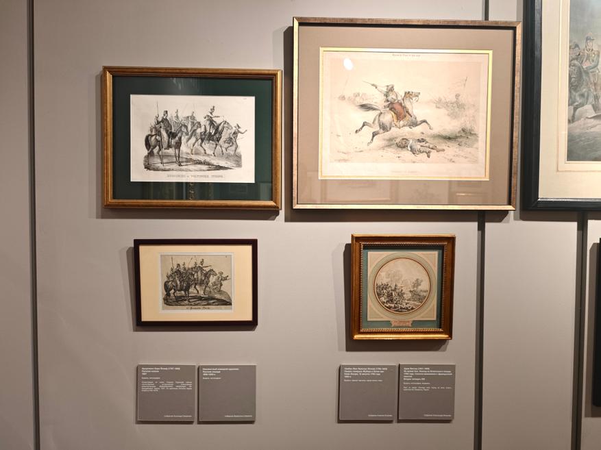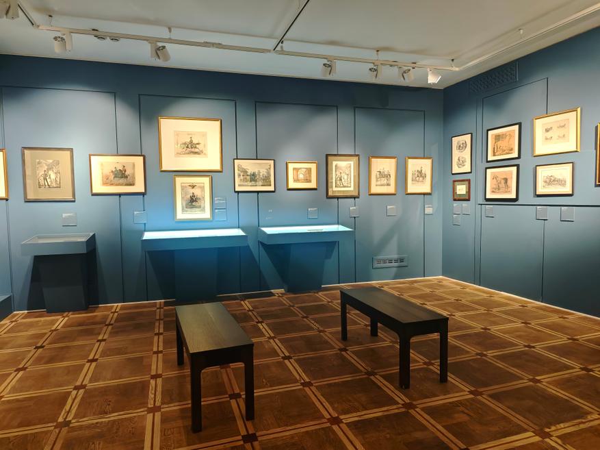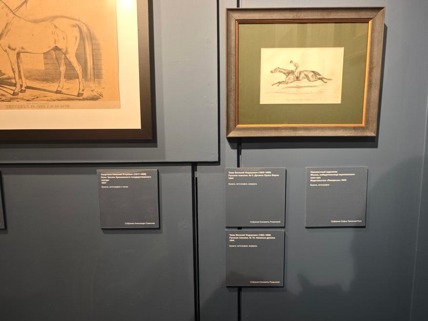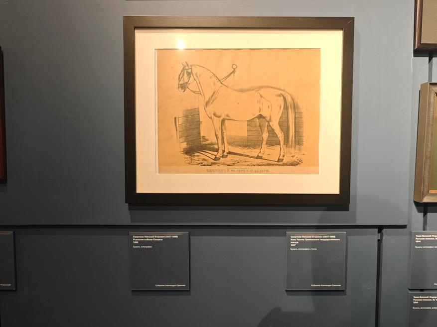 Среди знати считалось хорошим тоном иметь при себе художника, специализируещегося на изображении лошадей. Многие фамилии нам сейчас хорошо знакомы (Верне, Орловский, Сверчков и др). Работы этих мастеров представлены в экспозиции.