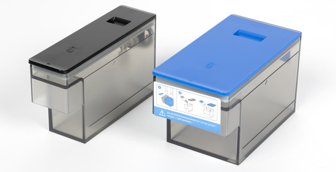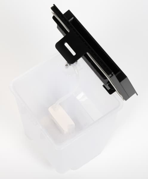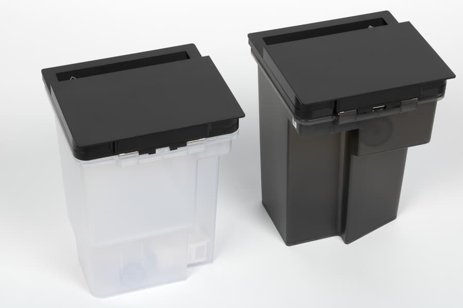 Бак для чистой воды имеет чуть больший объем и сделан из белого матового пластика. Бак для грязной воды — чуть меньше, пластик у него затемненный.