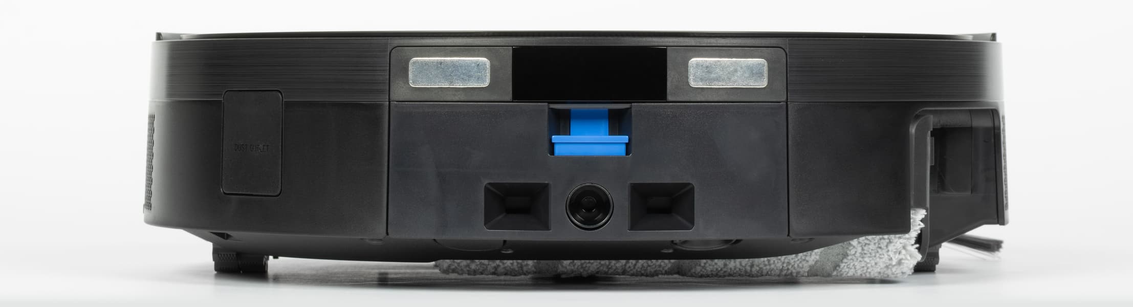 Разъем для заправки робота чистой водой также находится сзади. Впрочем, заправлять устройство вручную не придется: робот будет сам пополнять запас воды при парковке на базе.