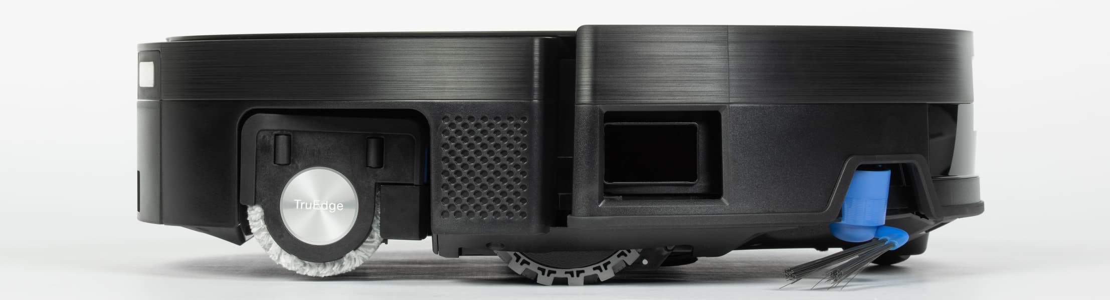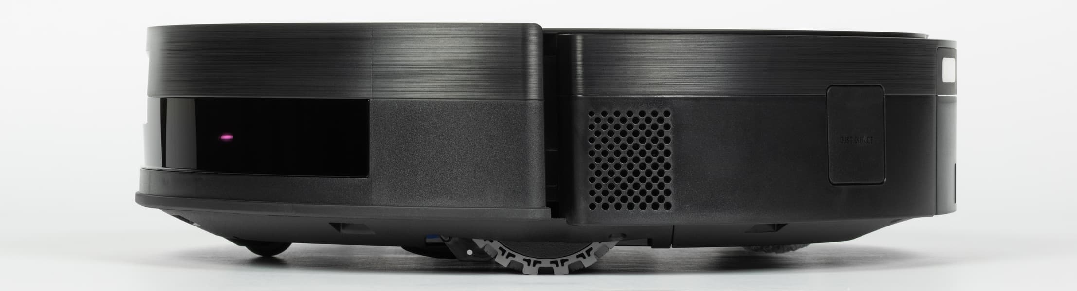 Сразу же обращаем внимание на отсутствие классической башенки с датчиком-лидаром. Она и без того увеличила бы немалую высоту устройства. Лидар у робота, конечно, есть: в данной модели используется интегрированная фронтальная навигационная система без классической башни, включающая: