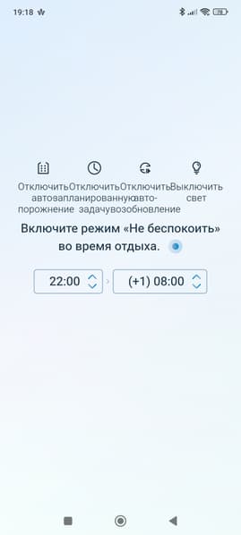 В ходе первого запуска приложение познакомит нас с основными настройками и поможет выбрать оптимальные параметры: настроить часовой пояс и язык приложения, время режима «не беспокоить» и т. п. На этом же этапе будет предложено обновить прошивку.