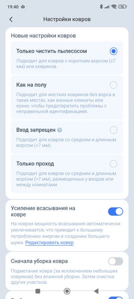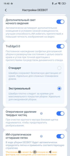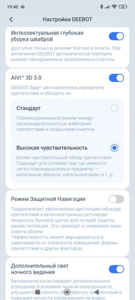 Все остальные дополнительные опции и дополнительные режимы вполне предсказуемо прячутся в мобильном приложении. Ведь без него современный робот попросту не может функционировать как положено.